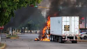 Intense fighting in Culiacan, a city of 750,000 people, left blazing vehicles strewn across the street and sent terrified residents running for cover.